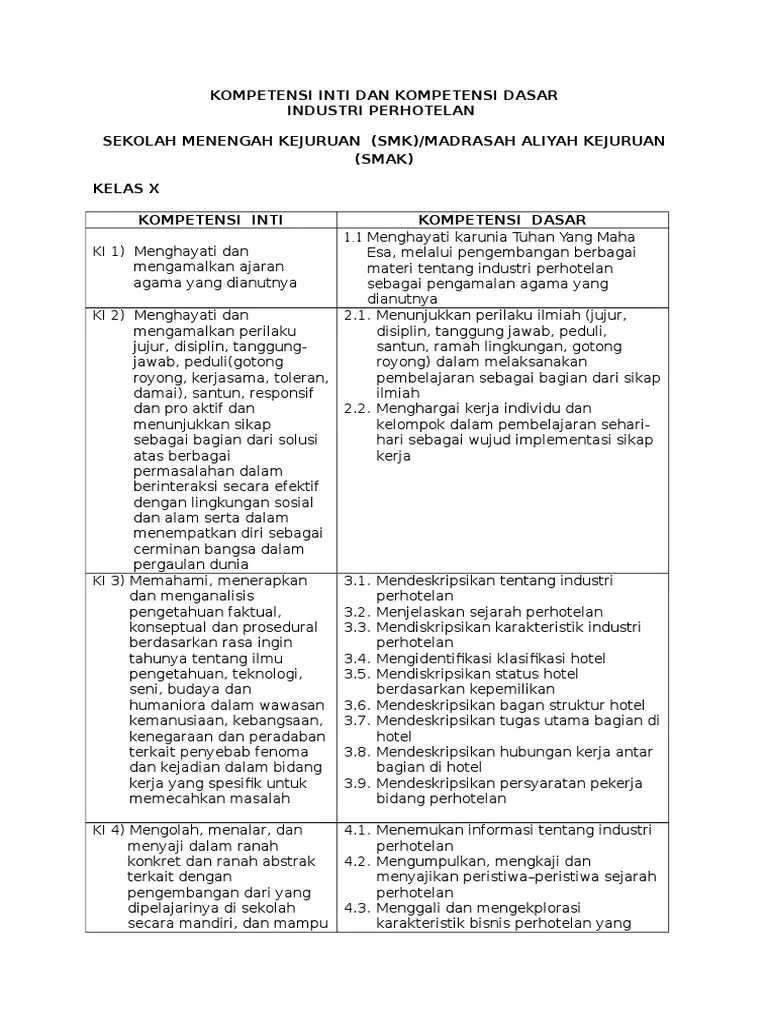 Marketing semester ganjil kelas x. 02 c3 ki kd paket upw pemesanan tempat kelas xii. Ujian simulasi dan komunikasi digital. X kompetensi inti* ki 1: Dinyatakan naik kelas apabila telah mengikuti seuluh ketentuan tersebut. industri perhotelan dan beberapa bidang usaha terkait lainnya seperti agen perjalanan, restauran, transportasi, dan sebagainya sering juga dimasukkan dalam kelompok luas hospitality. Soal pkn kelas 11 : xi 1 dan 2 kompetensi inti ki 1. Silabus kurikulum 2013 smk akomodasi perhotelan revisi 2018 memiliki perbedaan dengan silabus revisi 2017, dimana silabus revisi 2018 ini lebih fokus dalam meningkatkan hubungan atau keterkaitan antara komptensi inti (ki) dan kompetensi dasar (kd). Produk kreatif dan kewirausahaan perhotelan: Mengenal industri perhotelan kelas x. Kepariwisataan soal ujian semester kelas x smk perhotelan contoh soal pilihan. Suwithi, ni wayan (2013) industri perhotelan kelas x semester 2.